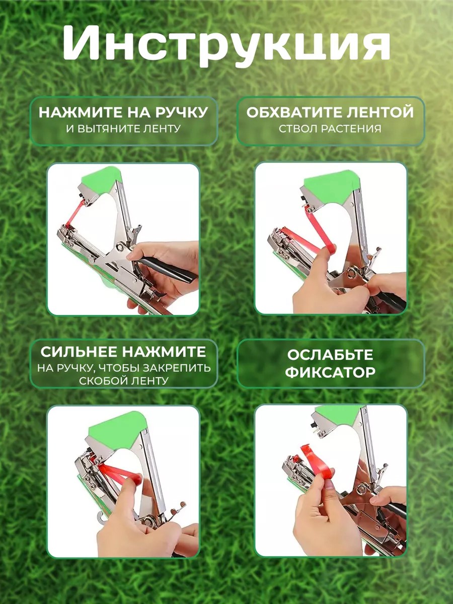 Обеспечивает быстрое и надёжное закрепление стеблей овощей, цветов, винограда и кустарников в саду, на грядке или в теплице, без лишних усилий и повреждений.